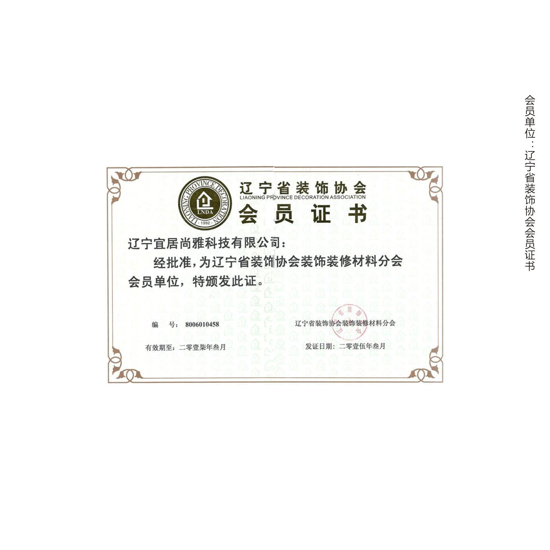 会员单位:辽宁省装饰协会会员证书